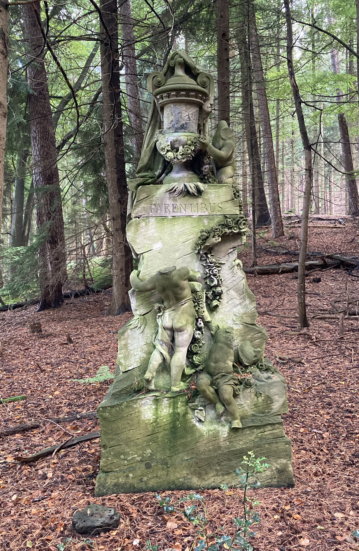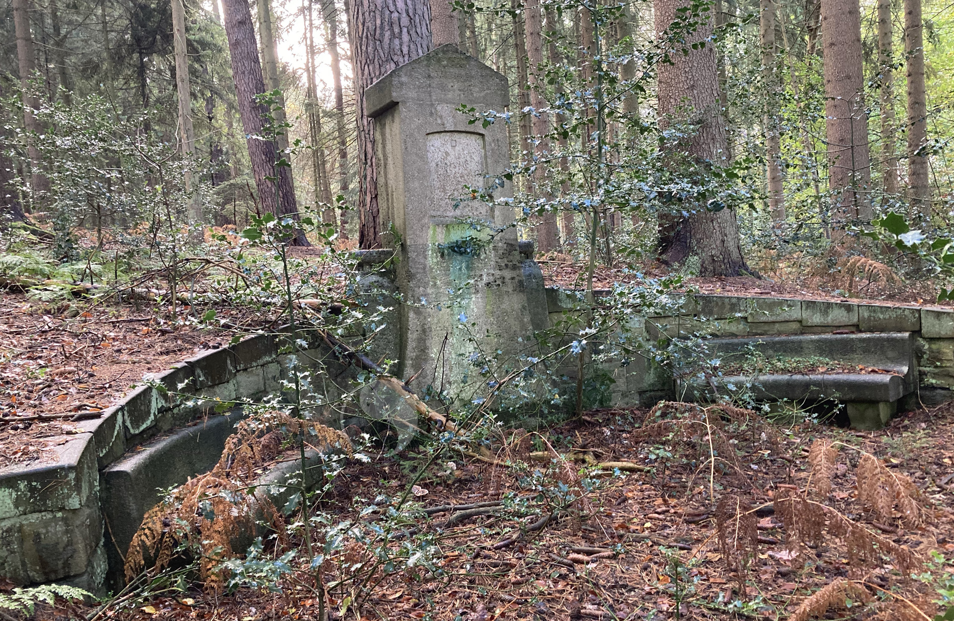 In einem Waldstück – nicht weit von der Lütticherstraße – finden sich eine steinerne Bank und in deren Nähe ein leider stark beschädigter großer Sandstein, der kunstvoll mit Rosenranken und drei empor zu einem Kelch strebender Putten behauen ist. Deren Köpfe fehlen allesamt.